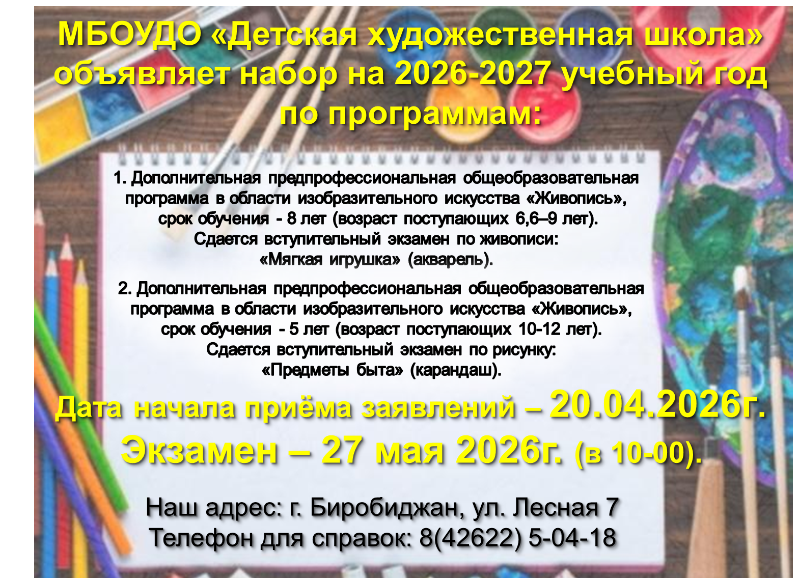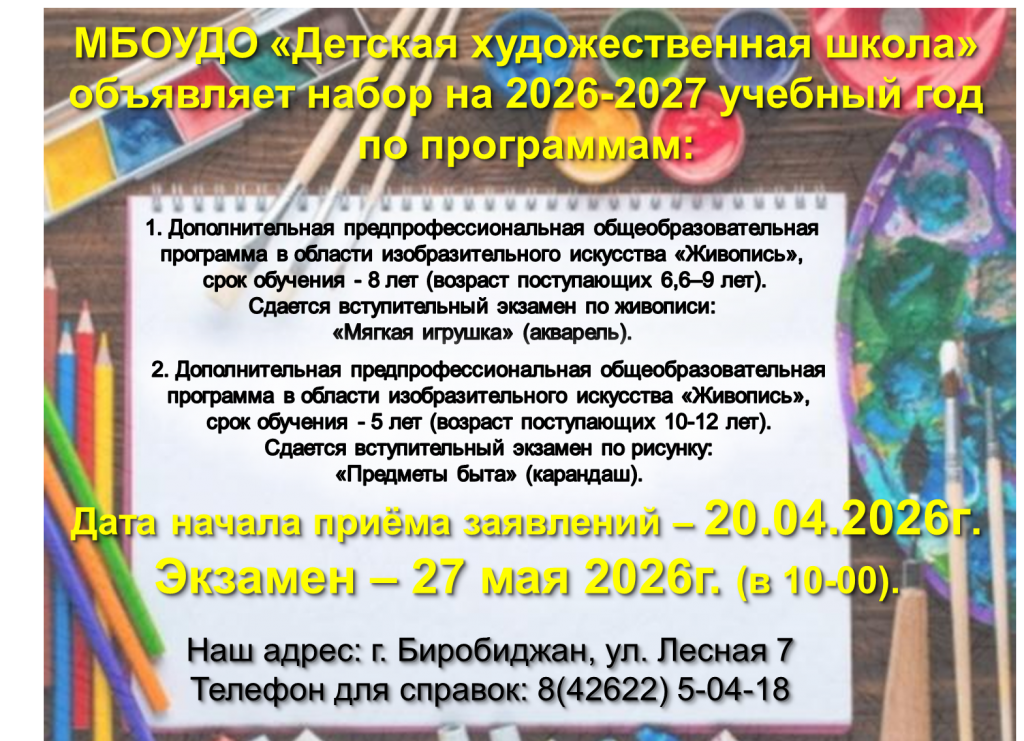 Приёмная кампания 2026-2027 учебного года 16.03.2026 / Об организации приема учащихся по дополнительным предпрофессиональным общеобразовательным программам в области изобразительного искусства на 2026-2027 учебный год